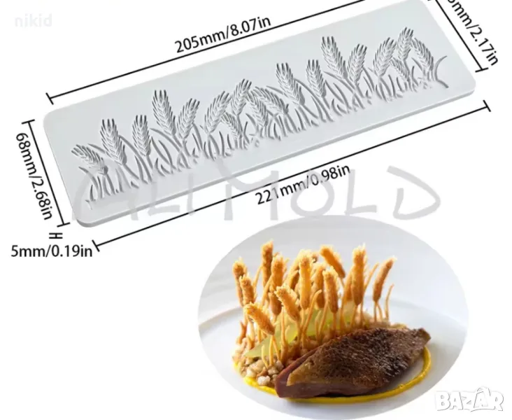 Стръкове овес жито пшеница силиконов молд борд кант дантела фондан декор украса торта → Обява 49788517