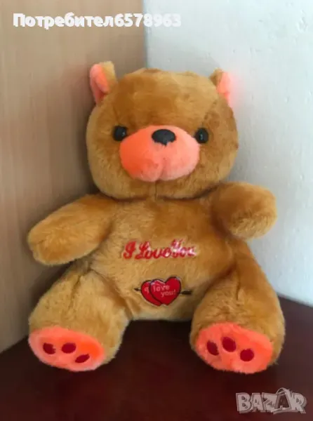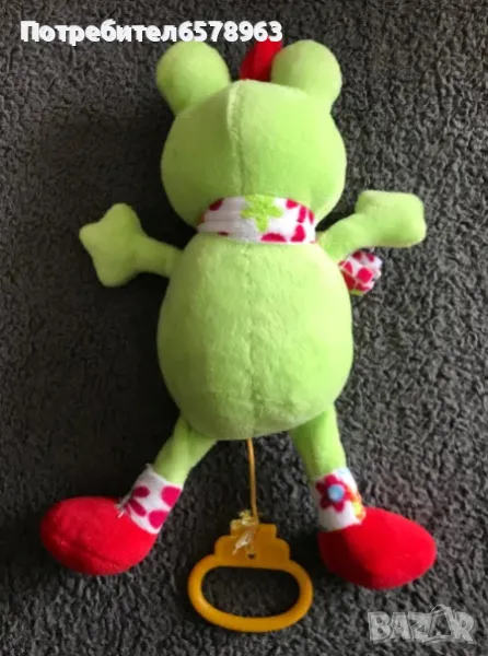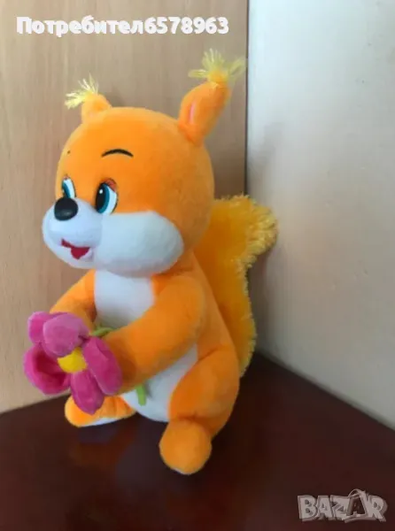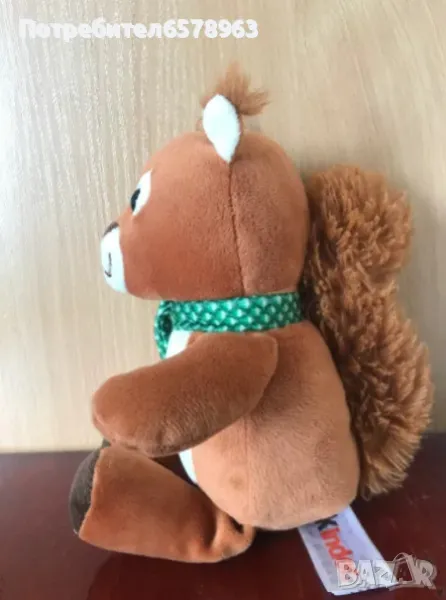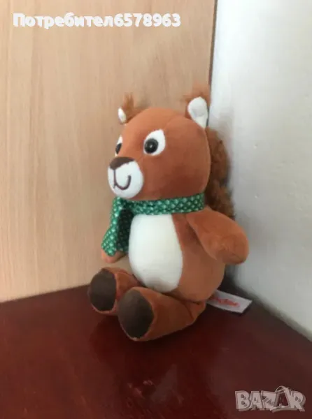 свежа и мека катеричка с рунтава опашка . Неразличима от нова . Плюшено мече . С надпис и сърце I love you. С цип на гърба. Мечето е много запазено като ново . Височина 30 см. Плюшена катеричка от Киндер с рунтава опашка . Височина 23 см. Запазен като нова. Плюшено хипопотамче . Запазено като ново . Височина 19см. Музикална плюшена жабка в ярко зелен цвят с шалче на цветя . Дърпа се