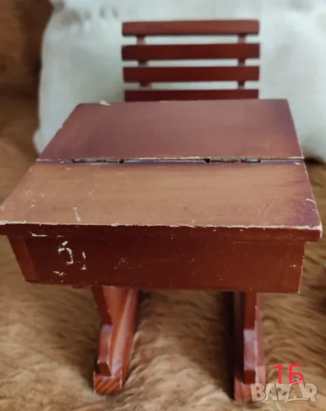 Височина 31 см.в седнало положение. Чинът е дървен и се отваря.