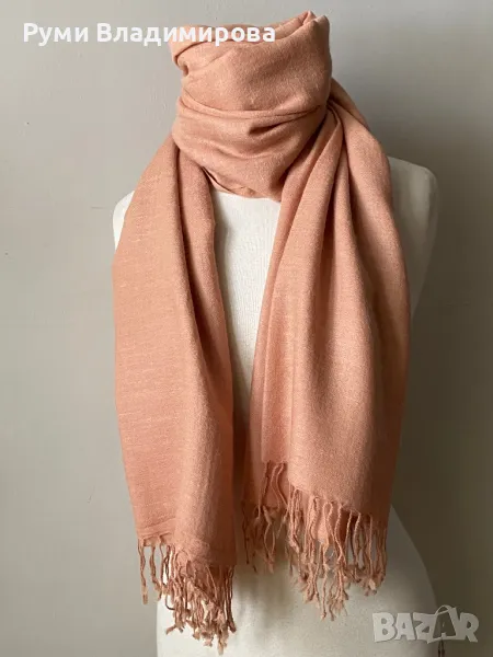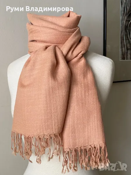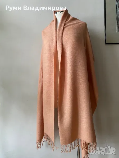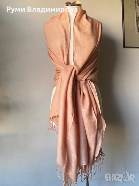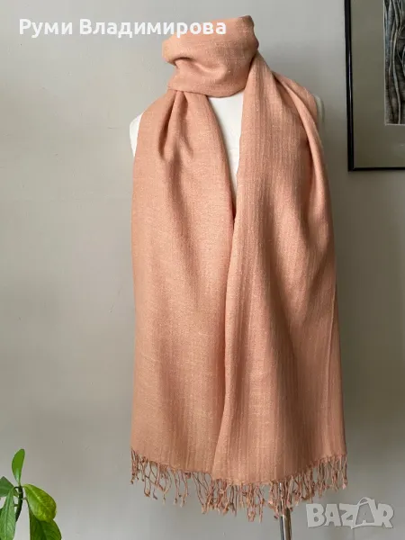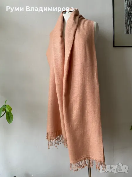 Голям, бледо розов шал от 100 % пашмина, 2 метра → Обява 49789294