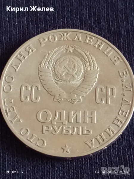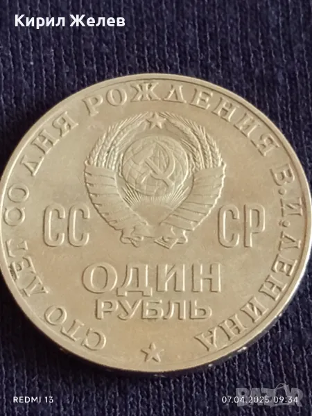 Юбилейна монета 1 рубла 1970г. СССР 100г. От рождението на В.Й.Ленин за КОЛЕКЦИЯ 50187