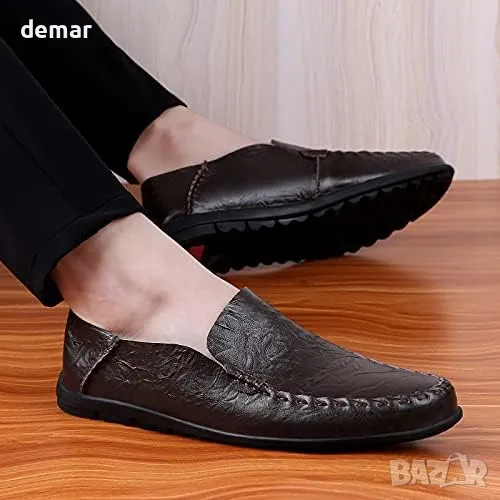 Мъжки обувки без връзки: Дишащи мокасини, плоски обувки за ежедневието и бизнес, 40, кафяви