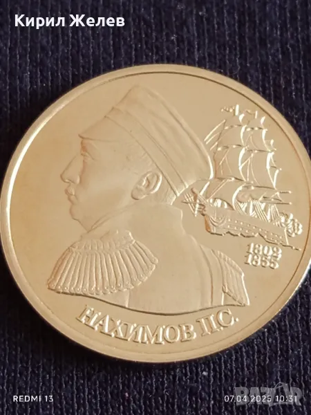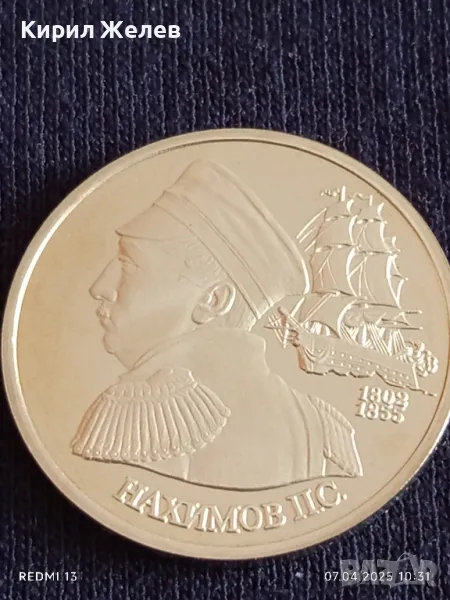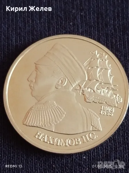 Юбилейна монета 1 рубла 1992г. Русия 150г. От рождението на Павел Нахимов 39870