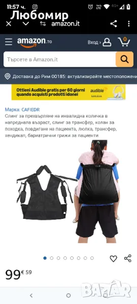 Слинг за прехвърляне на инвалидна количка в напреднала възраст, слинг за трансфер
