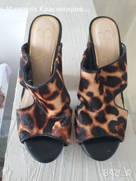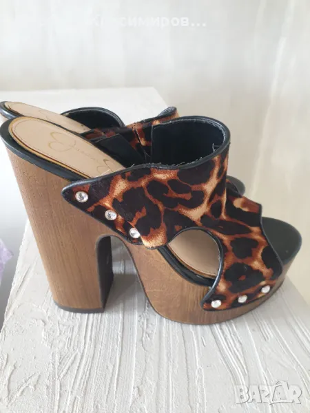 Чисто нови дамски чехли на висока платформа с тигрови мотиви