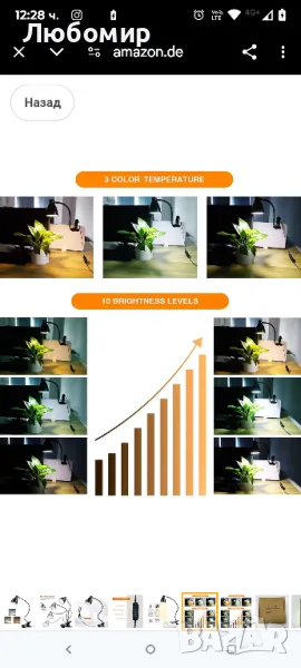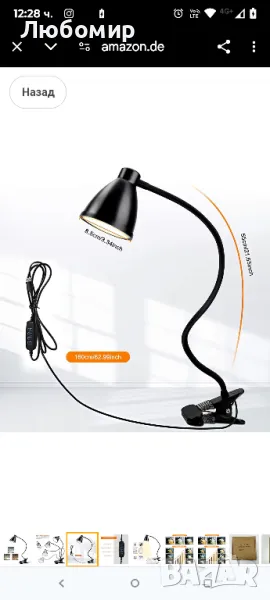 38 LED лампа за четене със скоба, 3 нива на цветна температура, 10 яркости с възможност