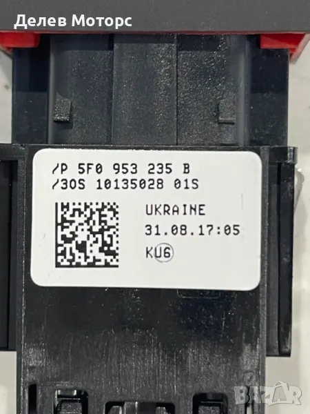 5F0953235B копче бутон за аварийни светлини от Seat Leon ST FR, 1.8 TSI 180 кс., двигател CJSA, скоростна кутия SME 7DSG, 107 000 km., 2017 г., euro 6B, Сеат Леон ST FR, engine CJSA, gearbox SME(7A) DSG в автоморга Delev Motors, между с. Каменар и с. Куманово гр. Варна.