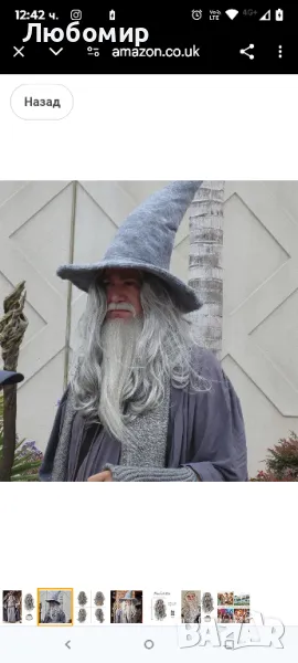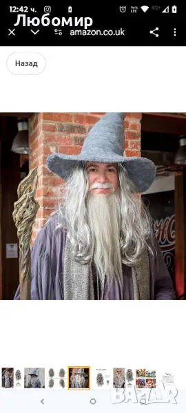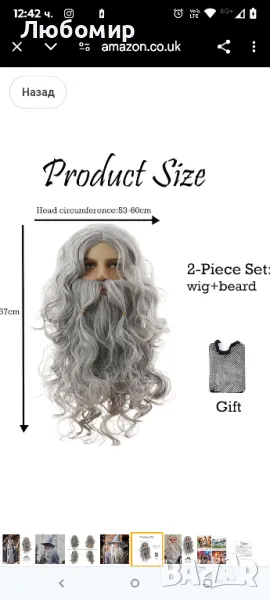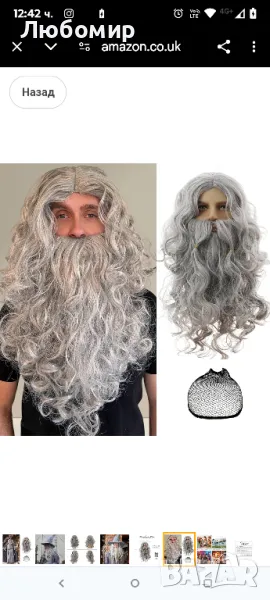 Дълга сива перука за мъжки костюм Сива перука с капачка на перука и брада