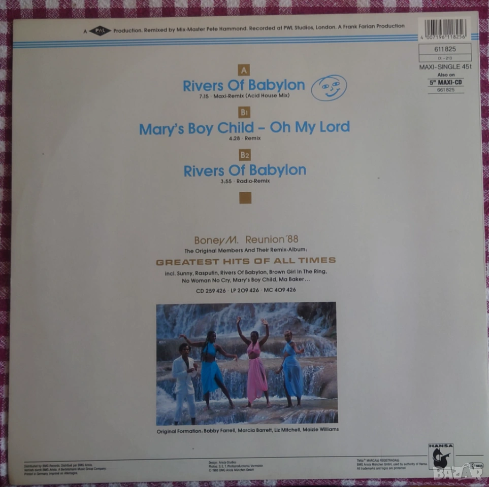 Boney M. – Rivers Of Babylon / Mary's Boy Child - Oh My Lord (Remix ’88) Gerrmany 12" макси сингъл в отлично състояние. Цена 13.00 EU.