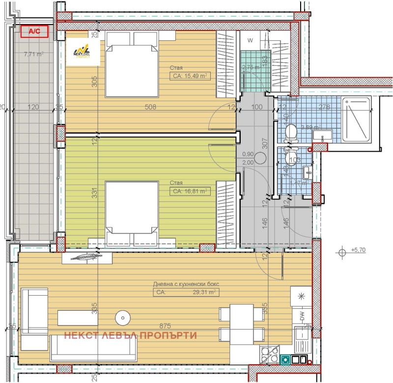 ЗП: 95.72 кв.м. | РЗП: 113.28 кв.м. | Склад - светла площ: 5.16 кв.м.
