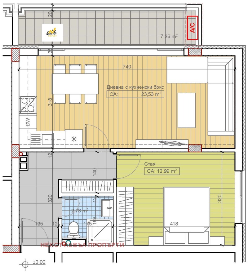 ЗП: 63.85 кв.м. | РЗП: 74.53 кв.м. | Склад - светла площ: 2.76 кв.м.