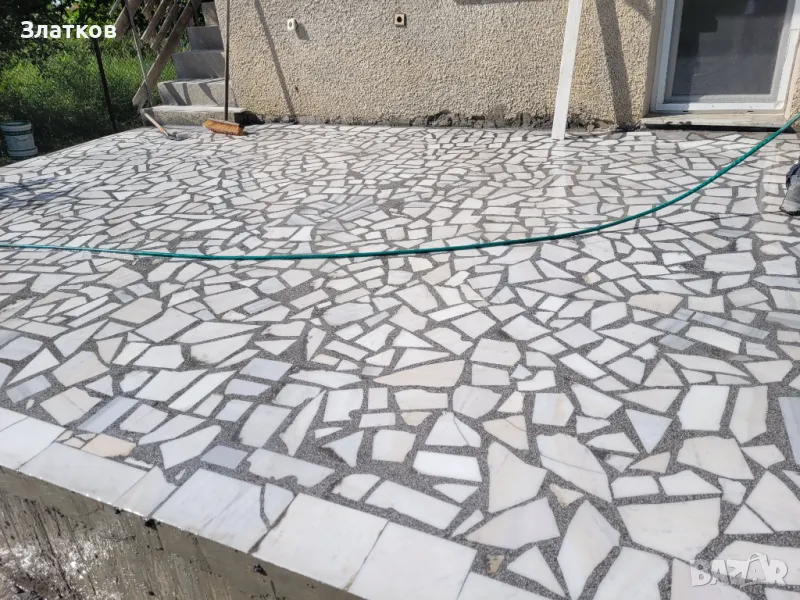 Бяла мозайка е на цена 85лв.кв., с труд и материали и 2 броя шлайфане !