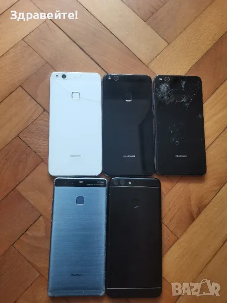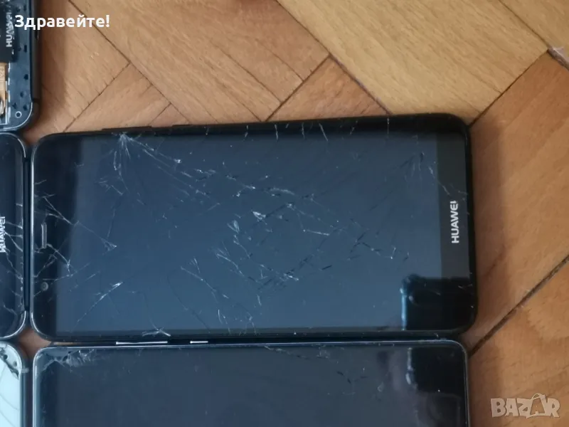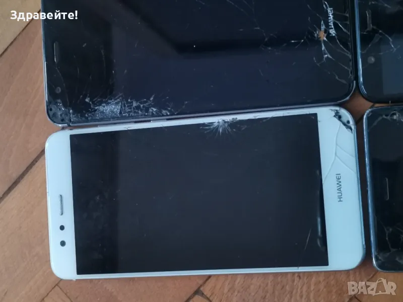 5 броя телефони Huawei, счупени дисплеи, работещи платки.