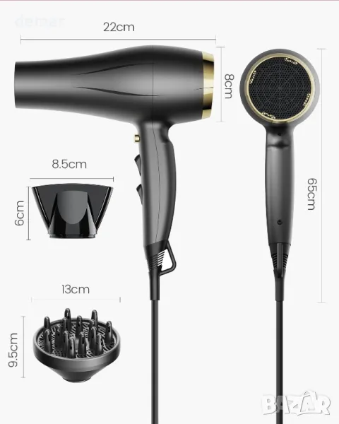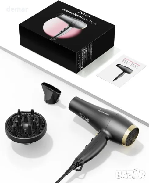 Сешоар Dekuri с дифузьор, професионален йонен сешоар с накрайник