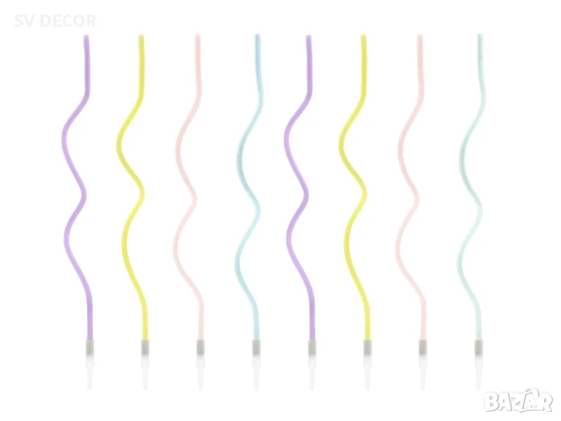 Къдрави свещи за торта, пастелни цветове (8бр./оп) → Обява 49794132