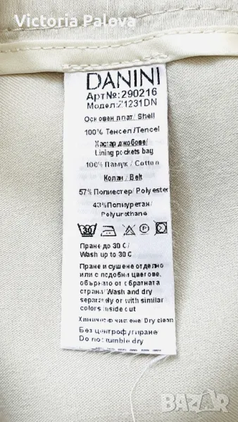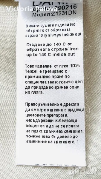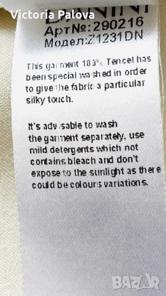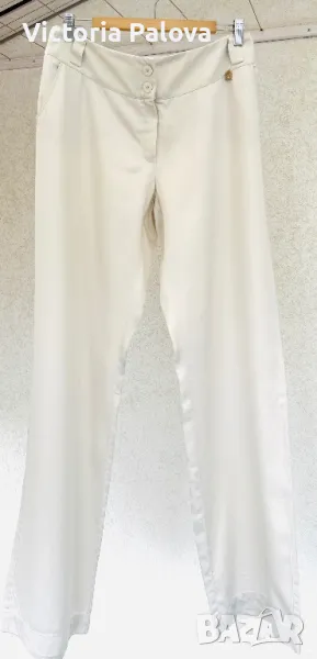 Светъл панталон , разкошна “студена” материя, приятна и гладка. Талия - 49-50см, коланът е широк 8 см, дължина - 108 см, крачол отвътре - 82см, широчината му горе - 37,5см, долу - 26см.