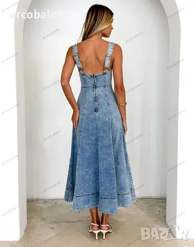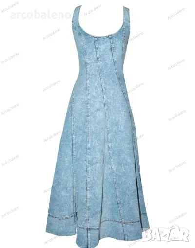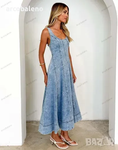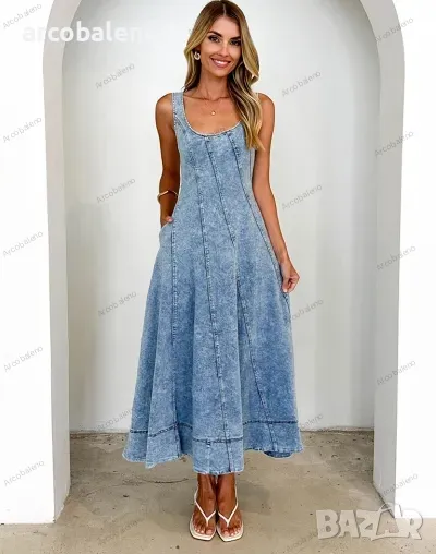 Дамска дълга дънкова рокля без ръкави без гръб с презрамки