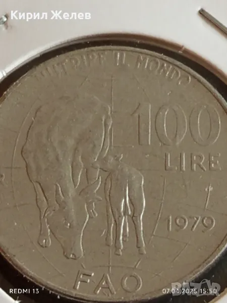 Монета 100 лири 1979г. Италия FAO рядка за КОЛЕКЦИЯ 30858