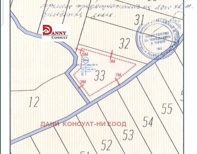 Агенция за недвижими имоти ДАНИ КОНСУЛТ предлага за продажба поземлен имот в гр. Велико Търново, кв. Картала . Имотът е с площ 2000 кв.м и действащ ПУП за промяна на предназначението му за жилищно строителство. Параметрите са следните:
