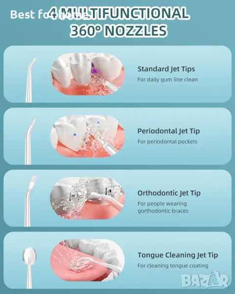 Зъбен душ с 4 сменяеми струйни накрайника OKALA