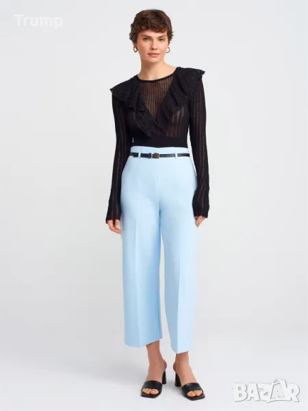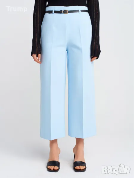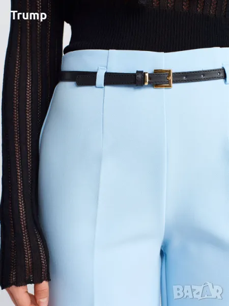 Стилен панталон с тънък колан, висока талия цвят син → Обява 49797171