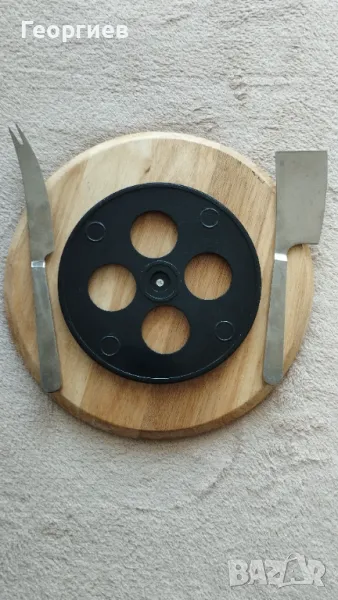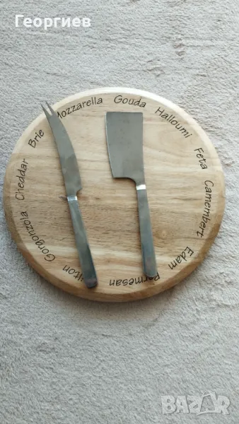 Въртяща дъска с нож-вилица и сатър.Чиния за плата,маслини. → Обява 49797272