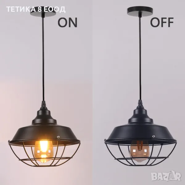 Черна индустриална ретро метална висяща лампа → Обява 49798230