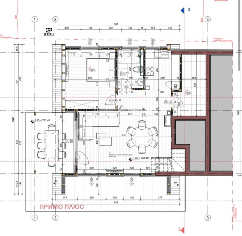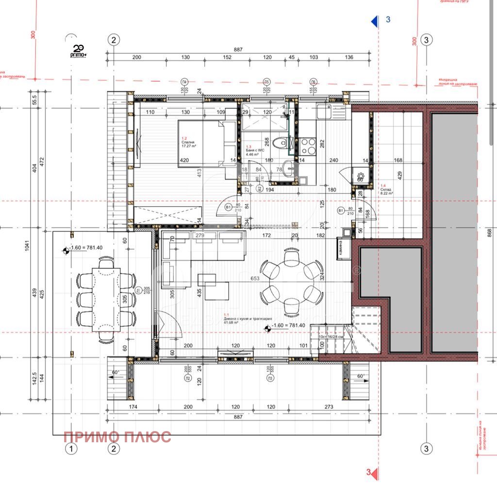 🛏 Стаи: 3 спални, 2 бани, просторна дневна с кухня, сервизно помещение, мазе