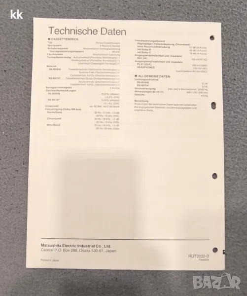 Technics RS-BX747/646 ръководство за употреба → Обява 49798518