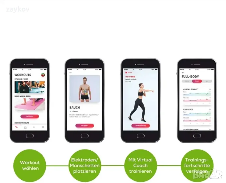 Вземете вашия личен треньор у дома: в приложението Beurer EMS HomeStudio можете да изберете вашия личен виртуален треньор, който да ви води през цялото обучение с видеоклипове за приложения