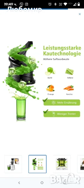 Мострена липсва едната каничка.Бавната сокоизстисквачка AAOBOSI SJ-022 с 200 вата използва технология за студено пресоване, за да запази хранителните вещества и вкуса на плодовете и зеленчуците. 80 мм захранващ улей намалява