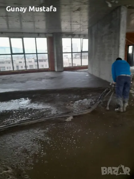 Машинно полагане на подови замазки. Извършваме всякакъв вид помещения сгради къщи, апартаменти, покриви закрити и открити помещения. Качество и Коректност