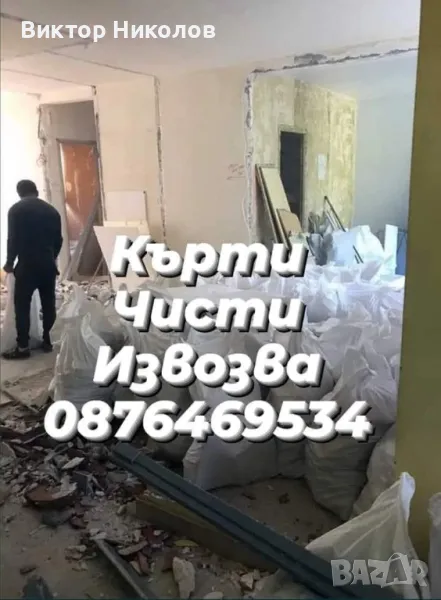 За Плевен и региона цена след оглед коректно отношение към всеки един клиент 0876469534Транспорт, хамалски, услуги, хамали, кърти, чисти, извозва, пренасяне, преместване, апартамент, къщи, тавани, мазе, чистене- Почистване на тавани и мазета. Работим без почивен ден Опразване на стари жилищаПочистване на апартаменти, къще, дворове тавани и мазета и всякакви помещения от стари мебели и вихтории. Приспадаме от цената в случаите когато взетите неща покриват разходите ни.- Почистване на тавани и мазета.Работим без почивен ден 24/7Издаване на фактура за извършената дейност!