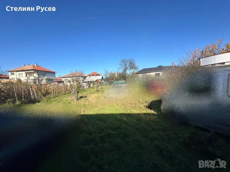 -изцяло равен терен , пред къщата до оградата отпред са около 300кв посипано с бял камък , зад къщата голяма градина