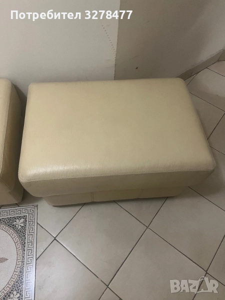 Кожени табуретки 2 бр.естествена италианска кожа- телешки бокс,перфектен и много здрав цвят- бежов като нови с размери 50/50 и другата е тип пейка 75/50 продават се заедно за символичните 300лв