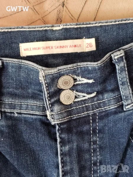 Levi's слим дънки с висока талия, тъмно сини. Моделът е Mile high super skinny ankle. Оригинал. Обути еднократно и изпрани. Имат еластичност. Отговарят на ХС размер.