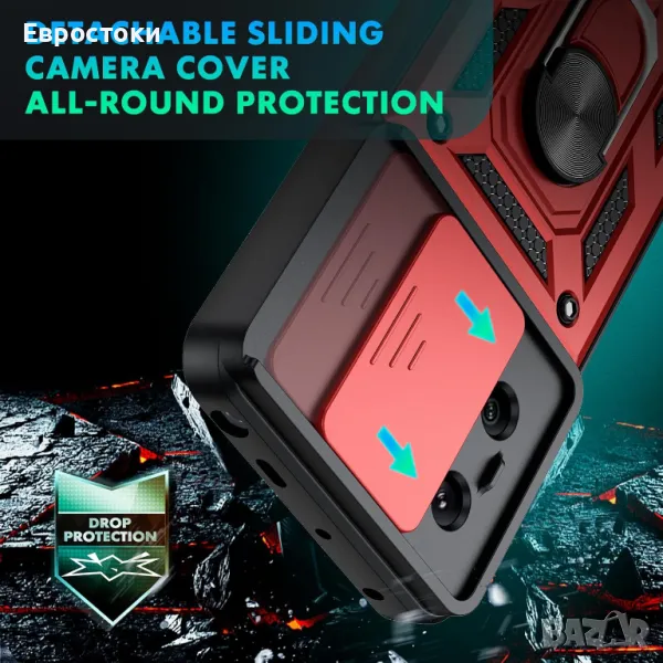 Xiaomi Redmi Note 13 Pro 5G (подвижен капак на камерата), уникален плъзгащ се капак на камерата за защита на камерата от надраскване, обработен с усъвършенствана технология, деликатен на допир, против пръстови отпечатъци и петна от масло. Плъзгащият се капак се движи лесно и не се разхлабва лесно, което предпазва перфектно обектива на камерата.