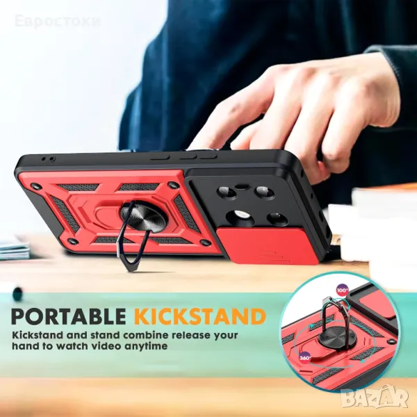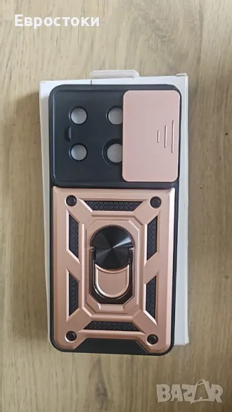 Xiaomi Redmi Note 13 Pro 5G, с плъзгащ се капак на камерата, въртяща се стойка за пръстен, удароустойчив, устойчив на надраскване защитен калъф. Розово злато