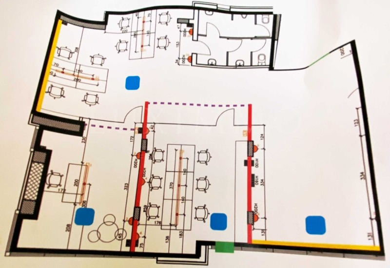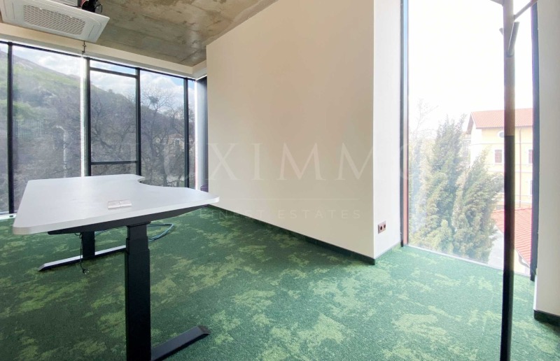 Помещението с обща площ от 188 кв.м е разположено на 4-ти етаж и разполага с панорамна гледка към града. Подходящо е за IT компания, кантора, представителство и др.