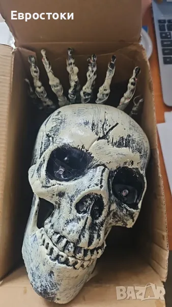 Joellfuner Комплект череп за Хелоуин, 2 ръце, 1 череп. LED декорация за Хелоуин Светещият скелет за
