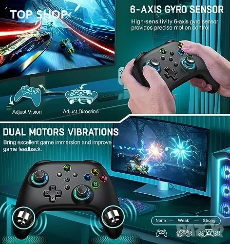 Потопете се с двойни вибрационни двигатели, осигуряващи четири нива на обратна връзка. Контролът на движението с вградени 6-осеви жироскопични сензори осигурява прецизен и отзивчив геймплей. Контролерът разполага и с функция за събуждане с един клавиш и лесно повторно свързване за Nintendo Switch.
