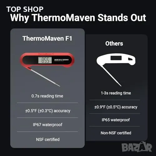 0.7 секунди за отчитане, ±0.5°F (±0.3°C) прецизност