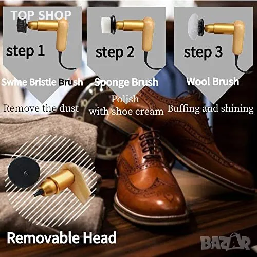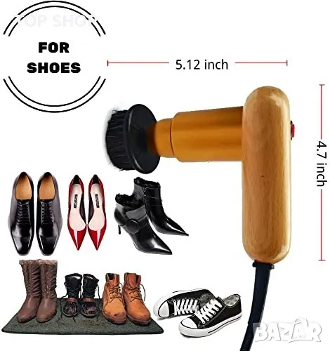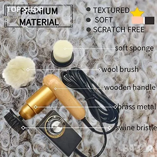 Основното тяло на електрическата машина за лъскане на обувки е направено от масивно дърво и месинг
