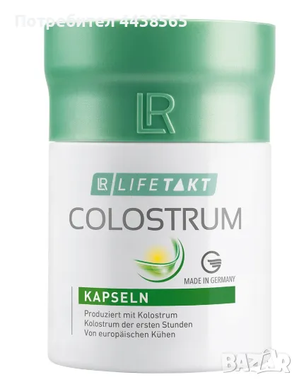 Капсули, съдържащи коластра, за ежедневен прием.За общото благосъстояние.Осигурява 800 mg ценна обезмаслена говежда коластра за дневна доза.С печат за качество от SGS INSTITUT FRESENIUS.Произведена в Германия.Съдържание: 60 капсули
