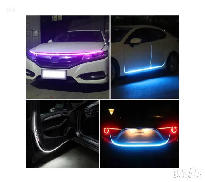 RGB LED лента, осветяваща капака на автомобила с Bluetooth и управление от мобилно приложение Осветете капака на вашия автомобил и му придайте модерен вид!LED лентата е идеалното решение, което ще придаде на вашия автомобил уникален и модерен вид. Продуктът не само ще придаде характер на вашия автомобил, но и ще осигури практически ползи по време на шофиране.