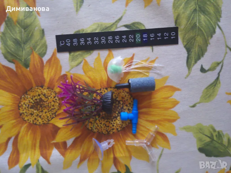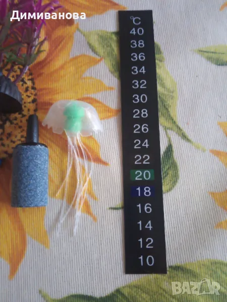 Комплект за аквариум ( термометър, камъче за въздух, водорасло, кранче за въздух) → Обява 49807716