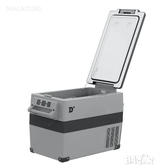 Преносим компресорен хладилник. Дигитален дисплей и регулируема температура от -20°C до +20°C. 42 литра. С двоен кабел (запалка и домашен контакт) и захранване 12/24V DC/220. Дисплей за стойност на напрежението с предварителна настройка за безопасност за акумулаторите.