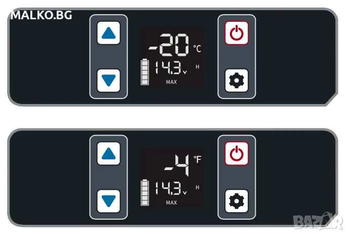 Регулируема температура от -20°C (макс. 25°C околна температура) до +20°C (без нагряване)