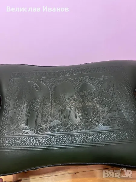 Старо египетско столче с перфектна кожа. Отлично състояние. Като чисто ново.