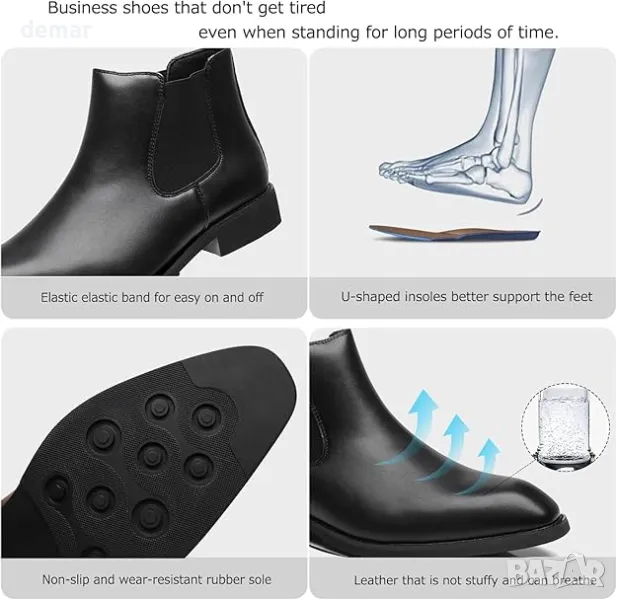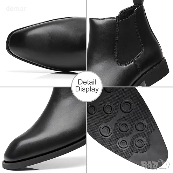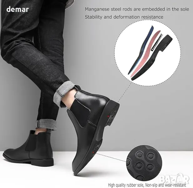 Мъжки официални обувки Chelsea, изработени от висококачествена изкуствена кожа с ръчно изработен горен слой за стилен и класически вид. Проектирани за бизнес поводи с елегантен дизайн, с еластични страни за лесно обуване и събуване. Удобни за продължително носене, идеални както за бизнес, така и за официални събития като сватби, срещи и партита. Модерни и универсални за съчетаване с различни стилове.